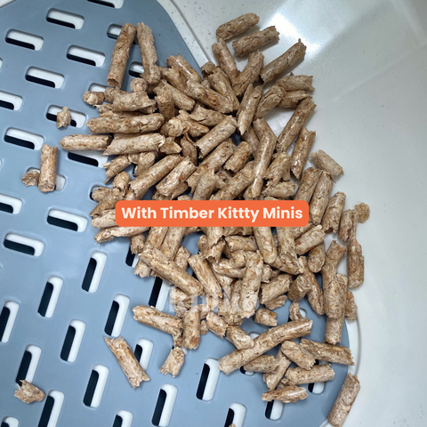 Make clean-ups more efficient by pairing Timber Kitty with this sifting litter box. The sifting layer is suitable to sift "Minis" and "Original" sized pellets. Comes with a plastic scooper. Sifter hole size is adjustable.