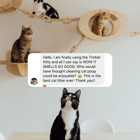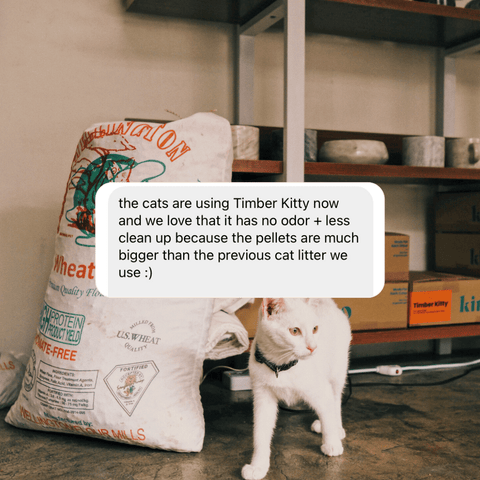 Much like us, our feline friends are creatures of habit too! While there’s no magic formula for making the switch, a good rule of thumb is to add some of their old litter into your Timber Kitty, decreasing the portions of the old litter as time goes on. Some cats do best also with just a cold turkey full switch, which makes them go to the closest available potty. Don't forget to reward after a job well done!