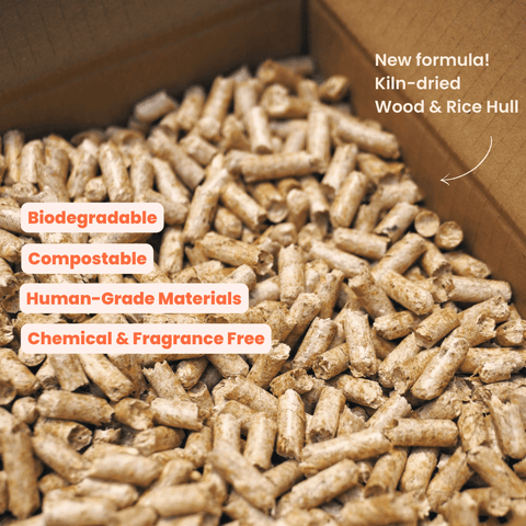 Made of assorted woods and upcycled rice hull, our Timber Kitty is 100% natural, double kiln dried, biodegradable & compostable.
